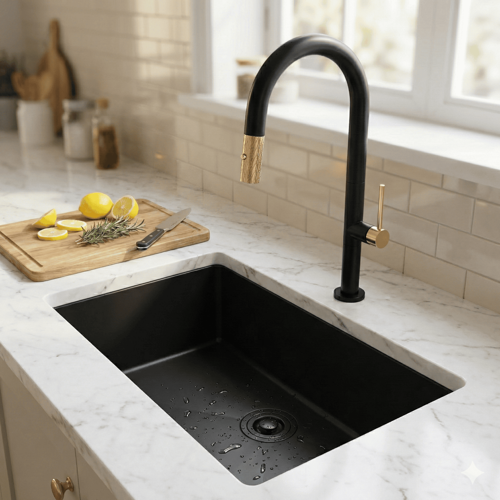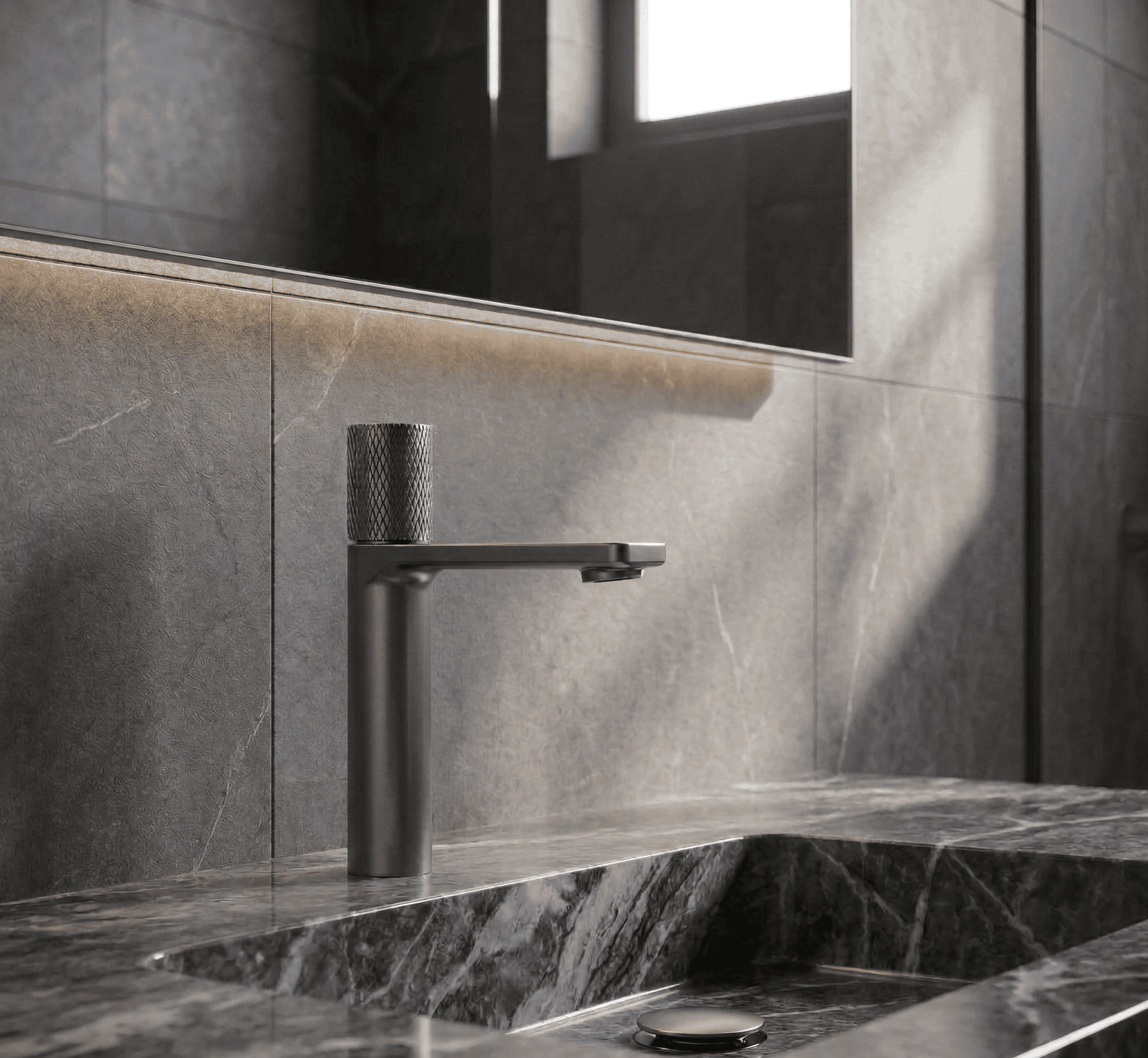 A Symphony of Modern Luxury and Meticulous Detail. Masterpiece of curated, industrial-inspired luxury with this impeccably designed knurled faucet.