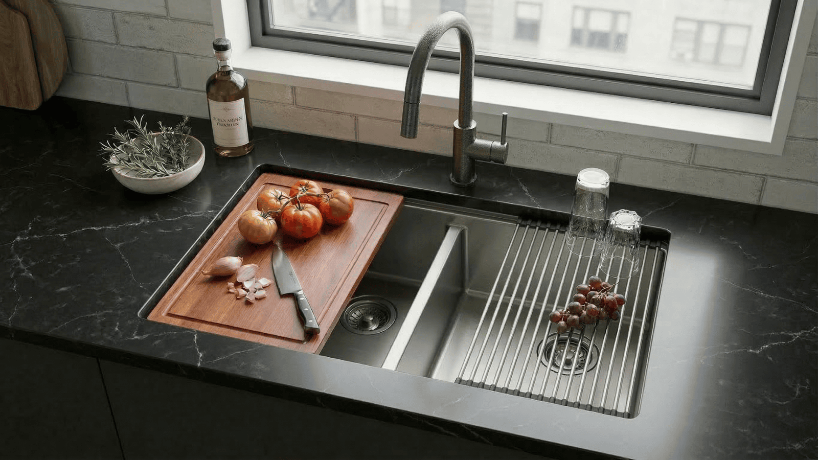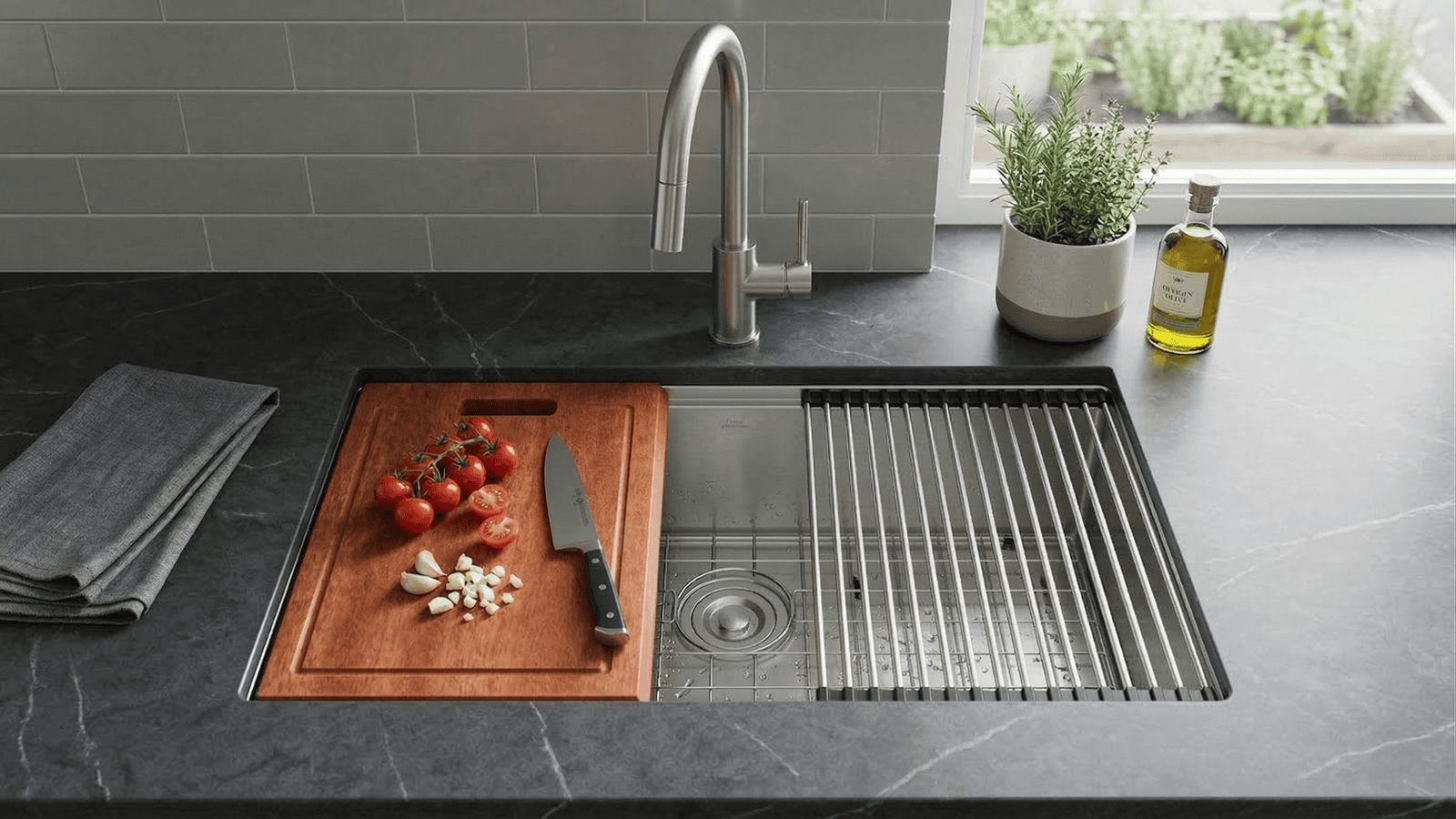 33" Single Bowl Kitchen Workstation with Accessories